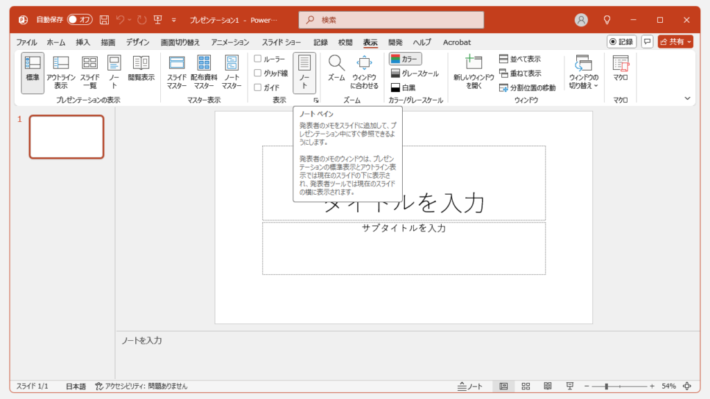 PowerPointで発表用のスライドを作るとき、発表者メモとして「ノート」を書き込むことが多いですよね。